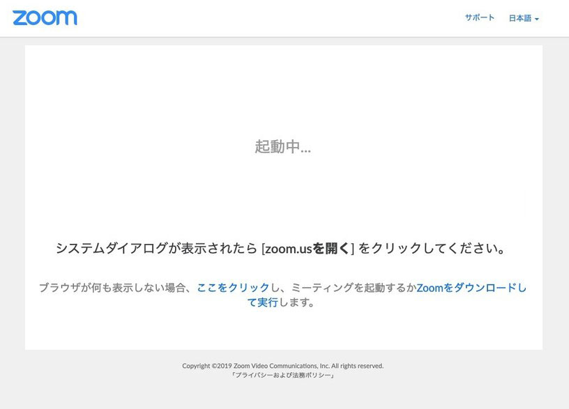 2)このメールの「Zoomミーティングに参加する」の下に記載のURLをクリックするとブラウザが立ち上がり、Zoomがダウンロードされます。